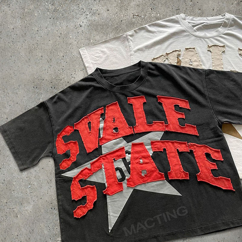 Custom Graphic Tees T-shirt Men's Print DTG Print Vintage Distressed Patch Embroidery Acid Wash T-shirt Pria